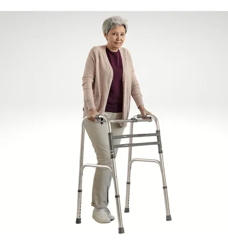 Com sua estrutura em alumínio de alta qualidade, o andador é dobrável e fácil de montar, ideal para uso doméstico ou em deslocamentos, além de se ajustar a diferentes alturas de usuário para maior conforto.
