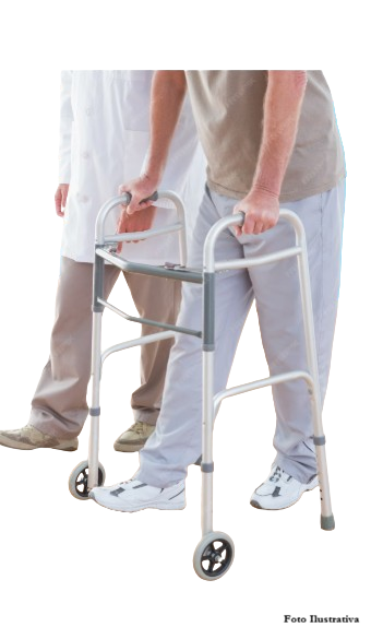 Com rodas, o usuário consegue se mover de forma mais rápida e natural, pois o andador acompanha o ritmo dos passos sem interrupções, o que facilita o uso em trajetos mais longos.